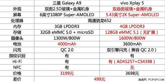 同为骁龙652 三星A9与vivo Xplay5谁更值?