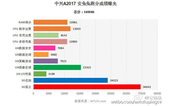 中兴新旗舰跑分另外,根据安兔兔的爆料,这款新机还将内置4GB TAM+64GB ROM,采用2K级别显示屏,前置800万像素摄像头,运行Android 6.0.1系统,目前提交的最高成绩为140086分。考虑到,同样搭载骁龙820处理器的旗舰乐Max 2爆出的跑分也只有13万多,所以中兴这款新旗舰的成绩还是相当不错的。