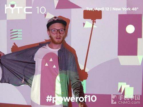 照片显示一位外国用户拿着自拍杆在类似展会的环境下拍照的效果。照片上还打着HTC 10名称,发布会时间和地点,以及#powerof10字样。据推文显示,这将是OIS功能首次用在手机的前置相机上。随后该条推文被删除。