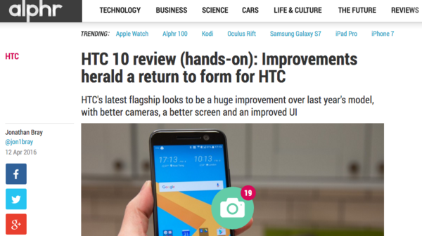 昨晚,HTC带来了大家期待已久的手机旗舰HTC 10。但是发布之后,中国网友一片沸腾,都在吐槽国行搭载骁龙652处理器的低配版本毫无诚意。而能买到骁龙820版本的歪果仁们自然是笑而不语。那么我们今天就来看看歪果媒体是怎么评价这部手机的吧。