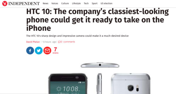 HTC 10将赌注压在了更快的速度、更长的电池寿命以及成像素质优秀的相机上,但是即使有一部优秀的手机也很难在最近旗舰手机频发的时期吸引消费者的注意。