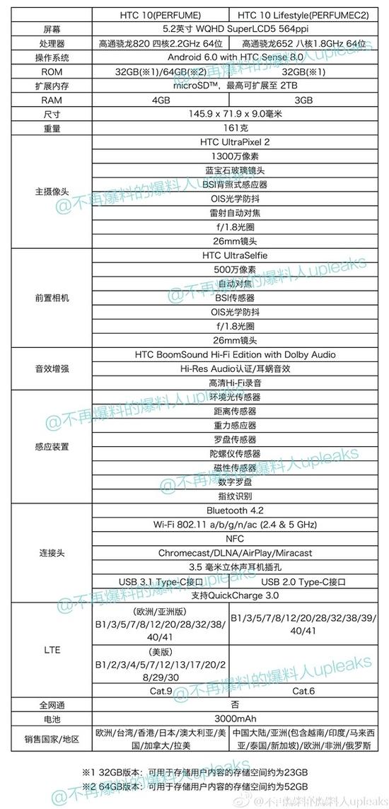 新加坡、马来西亚HTC 10参数而且现在暂时能够确认的是,中国内地、缅甸、泰国以及印度尼西亚四个国家仍然是搭载骁龙652处理器的,同时有趣的是,只有HTC大陆的官网将处理器器标注为MSM8976,其他地区的官网都直接写骁龙652,这又是为什么呢?