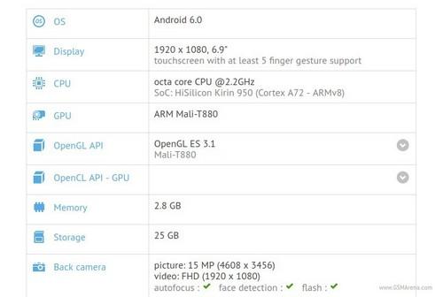 华为P9 Max部分数据GFXBench数据显示,华为P9 Max的屏幕尺寸达到了6.9英寸,分辨率为1920×1080,搭载海思麒麟950处理器,而不是P9身上的海思麒麟955,ARM Mali-T880 GPU,内置3GB运行内存+32GB机身存储,另外该机还配置了800万像素前置+1600万像素主摄像头。