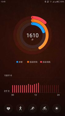 消息来源于微博截图显示,联想ZUK Z2 Pro内置了类似于iPhone的健康APP,居中环形图标以及下方的树状统计图应该分别是每天的运动量的图形显示和消耗的热量显示。值得注意的是,下方图标从左往右猜想依次是心率、走路、跑步、骑行和最右边一个未知功能的太阳图标。