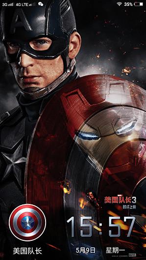 具体来说,“美国队长3”主题,从锁屏壁纸到桌面壁纸,都加入了美队元素,简单粗暴。点亮手机屏幕,第一眼就能看到高清的《美国队长3》电影海报,霸气 的美队形象时刻注视着你。同时,美队主题色彩搭配方面也是浓浓的美队风,主要以红色和蓝色为主,也就是队长盾牌的主色调,透露着厚重的阳刚气!