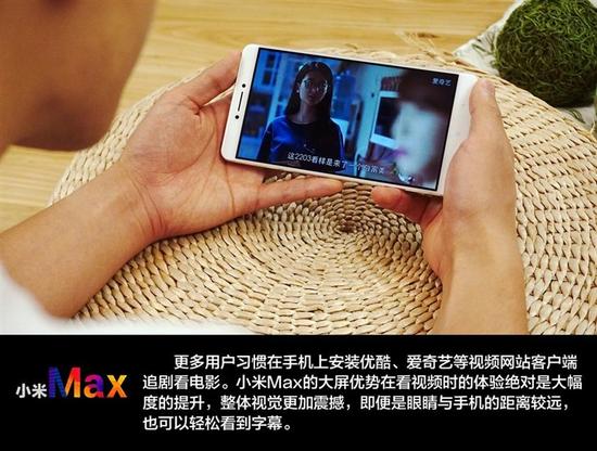 根据此前调查公司的数据移动端的流量占到整个视频网站流量的70%,更多用户习惯在手机上安装优酷、爱奇艺等视频网站客户端追剧看电影。从实际的体验来 看,小米Max的大屏优势在看视频时的体验绝对是大幅度的提升,整体视觉更加震撼,即便是眼睛与手机的距离较远,也可以轻松看到字幕。