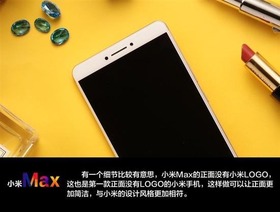 有一个细节比较有意思,小米Max的正面没有小米LOGO,这也是第一款没有小米LOGO的小米手机,这样的设计可以让机身正面更加简洁。