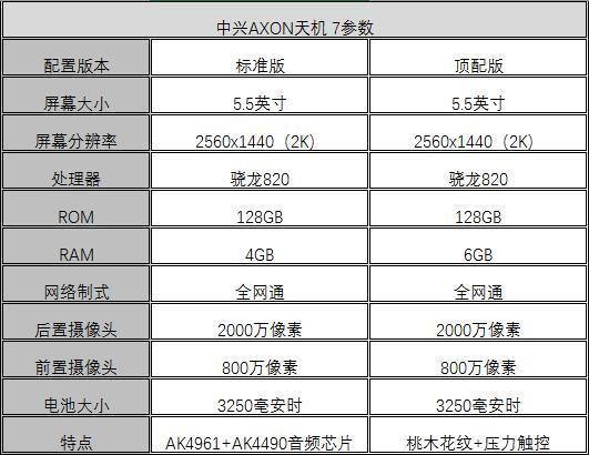 让我们先来看看中兴AXON天机 7的配置,此次发布的为两个版本,一个是标准版,一个是顶配版。我们手上拿到的是顶配版本。