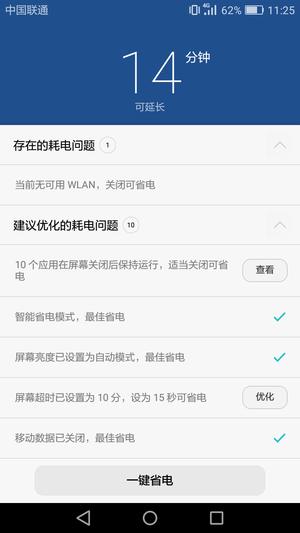 另外,电池管理功能还支持全面耗电检测,一键设置手机的省电功能,无需用户逐一设置,非常省心。