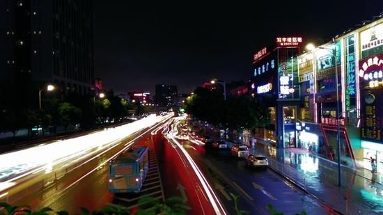 正常模式下拍摄的画面,纯净度不错,但牺牲了画面饱和度,色彩略显暗淡。这次荣耀畅玩5A也加入流光快门功能,通过这个功能,可以记录那些动态的光影,车水马龙的城市很好地呈现出来。