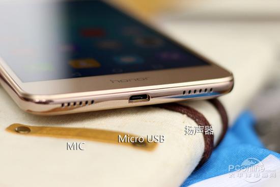 机身底部同样采用左右对称的开孔设计,不过仅有右侧的为扬声器,左侧的为MIC。荣耀畅玩5A的扬声器采用了一体BOX音腔设计,外放音效表现不错,立体感较强。此外,音量键和电源键设置在机身左侧,3.5mm耳机插孔位于机身顶部,摄像头轻微凸起。