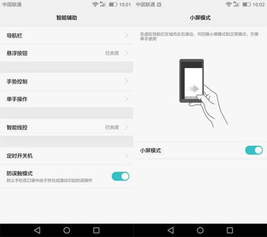 在辅助功能上面,有多项设置可以让手机的操作更为便利,例如开启小屏模式后,手机的操作界面会缩小,单手操作更为简单。