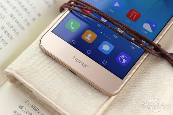 机身下巴加入了“honor”品牌LOGO,延用屏幕虚拟按键的设计。屏幕的黑边很窄,但边框并不是特别窄。