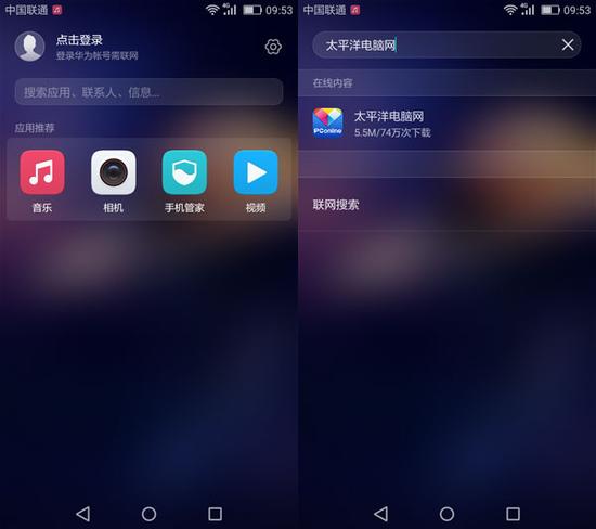 全局搜索是EMUI 4.1后面新增的功能,通过这个功能,可以直接搜索手机应用、信息和联系人,而且还可以联网直接搜索想要下载的应用和信息等等。
