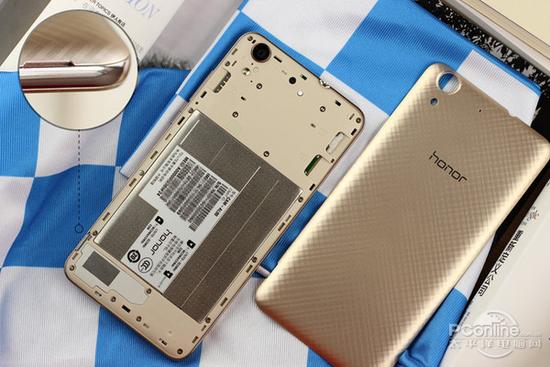 荣耀畅玩5A的后盖支持拆卸,后盖与机身采用了传统卡扣式固定的设计。虽然后盖支持拆卸,但荣耀畅玩5A不支持自由更换电池。