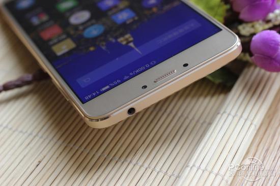额头采用如今非常流行的“大白”造型,自左向右分别是平常隐藏的呼吸灯、光线距离传感器、听筒和前置摄像头。小细节之二:听筒高度与屏幕玻璃刚好齐平,强迫症同学再不用担心听筒藏污纳垢。