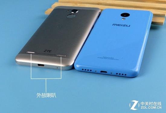 最后,两机的数据线接口均位于底部居中位置,耳机孔顶部偏左。扬声器在Blade A2上面被设计在了背部左边(右侧可能为后置录像声音收录麦克风),特殊性情况下会有遮挡。魅蓝3扬声器位于底部右侧,左侧对称的开孔是通话麦克风。
