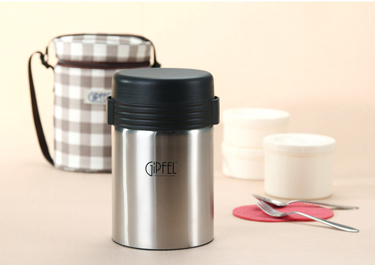 德国Gipfel 保温饭盒,具有双层真空,热情不易褪去,温度不易散去!德国保温饭盒,通过欧盟质检产品,给自己多一份安心,给家人多一份放心!具有珍珠砂面的内胆,不易粘油,易清洗!底部圆形真空无尾标志,采用食品级PP材质,可用于微波炉加热,健康有保证,具有耐热140摄氏度及耐冷-20摄氏度!采用硅胶密封圈,保证食物不会溢出来!拥有人性化的防滑提手,内部容器可轻松取出!高档加厚铝箔面,大幅度增加保湿效果!内置的储物网,方便收纳,用具有处放。