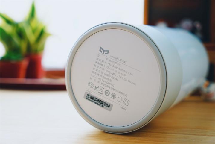 铝制底座,经过阳极氧化喷砂处理,科技感十足。大面积的铝合金的材质除了可以对灯体进行有效的保护之外,也有利于散热。LOGO印在底座的中间位置。其顶部两个按键:电源键和情景键,边缘带有触摸感应!底部包裹有一圈橡胶垫,起到防滑的作用。相关的参数也印在底部。纯白色的电源,和小米插线板也很搭。